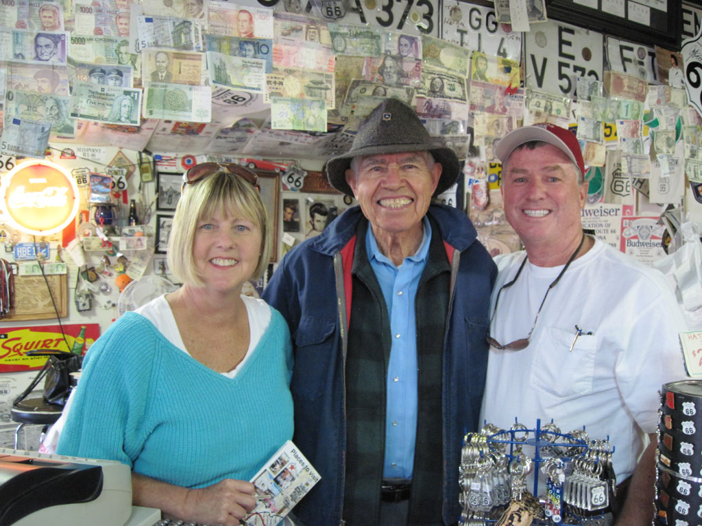 In reading about trips to the Grand Canyon, I had come across information about Seligman, Arizona and the history, decline and revival of Route 66. Specifically, I read about the role that Angel Delgadillo in Seligman played in organizing the very first Route 66 organization and having former stretches of Route 66 recognized as Historical Roadways. Route 66 was the first roadway from Chicago to Los Angeles. However, with the opening of the new federal interstate highway system in the 1950s and 1960s, many thriving towns declined or practically disappeared. So, we headed to Seligman which is just 1 mile off Interstate 40. We had the wonderful opportunity to meet Angel Degadillo and his daughter Clarissa at Angel & Vilma's Gift Shop on Route 66. Be sure to stop here for a great view of Americana and spend some money.