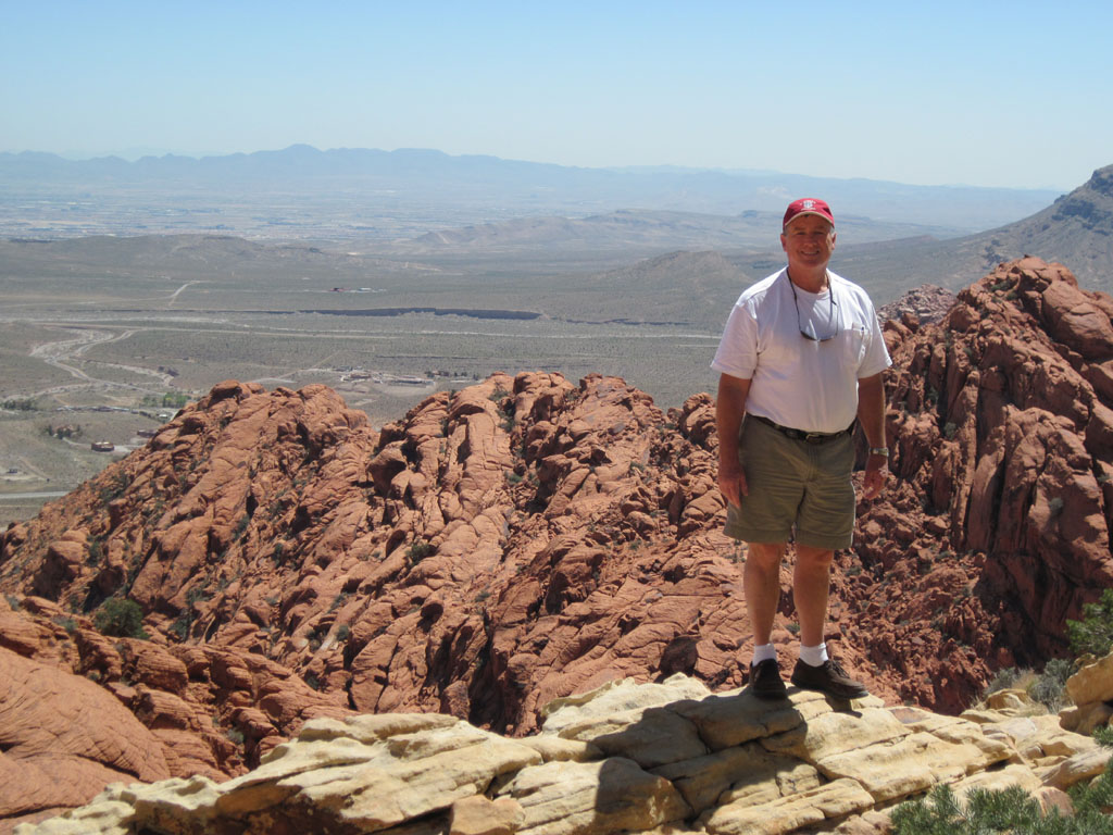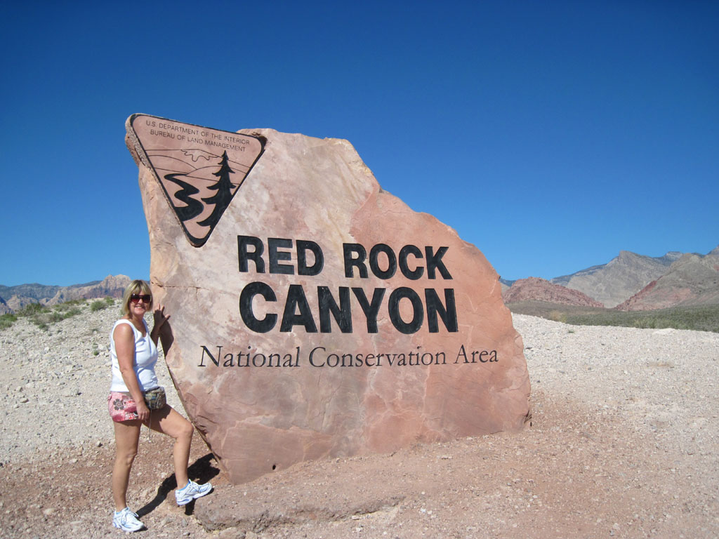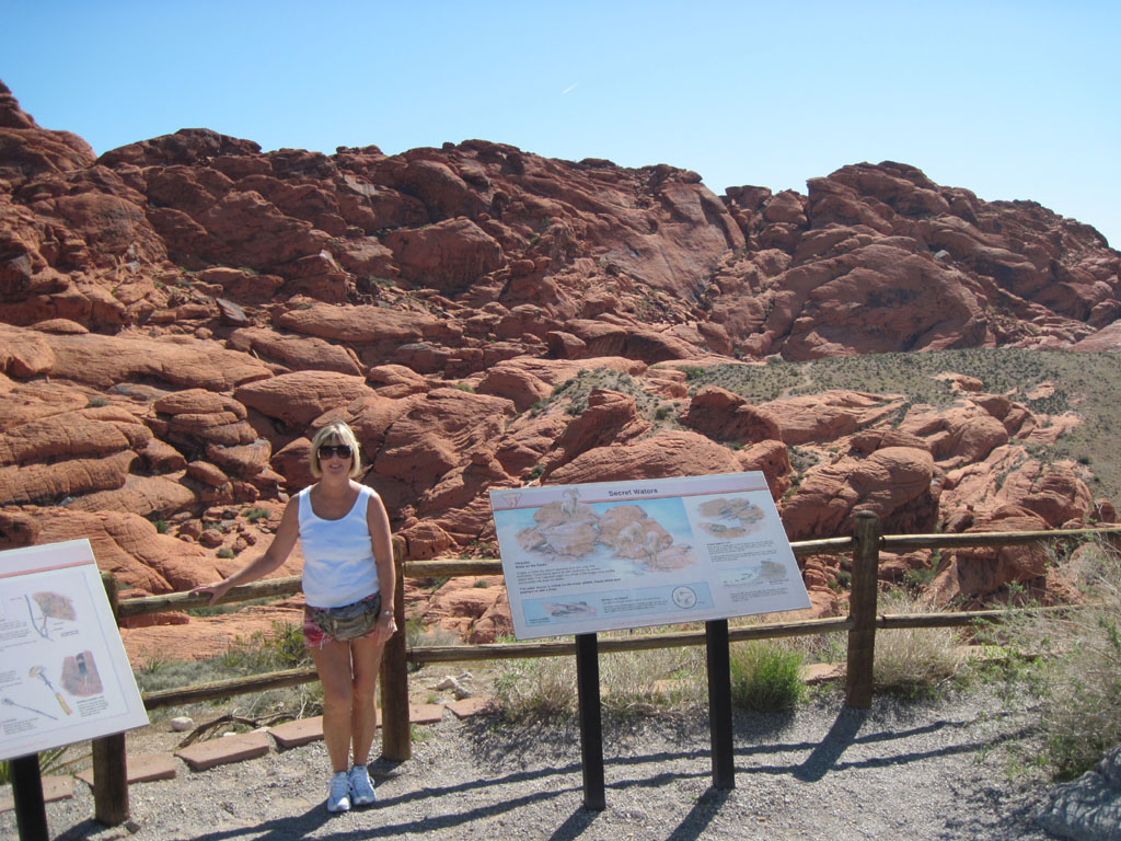 On Friday morning we drove over to Red Rock Canyon National Conservation Area (only 15 miles from downtown Las Vegas). We both believe this is another “must do” while in Vegas. At the entry plaza or Visitor’s Center, be sure to get a park map for the trail system. My Las Vegas guide book, had recommended the Calico Tanks trail. It’s a roundtrip of about 2 miles and 2 hours roundtrip. Basically walk/scramble up through a canyon and at a small reservoir, go right a little further for great red rock formation and Las Vegas views. Be careful as some places are slippery on the rocks and some steep climbing may be necessary. You may think you’re off the trail, but just continue on through the canyon till you see the view of Las Vegas. There are many other trails of varying lengths and a number of scenic overlooks to pull over in your car. For a great scenic overlook along the road, be sure to stop at High Point Overlook.