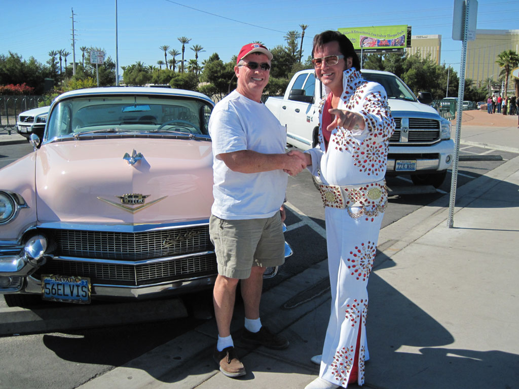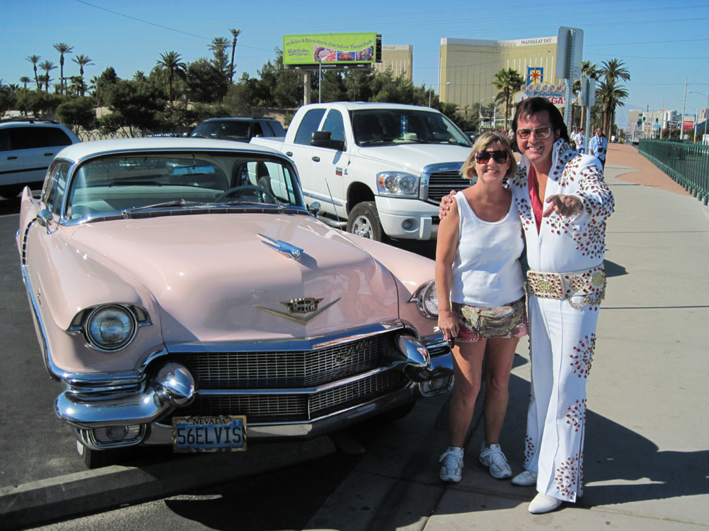 Our last really cool experience in Las Vegas was at the famous Welcome to Fabulous Las Vegas sign. It’s located at 5100 Las Vegas Boulevard South. There is a small parking area in the middle of the road. There were a number of people there taking pictures and we asked (as many other people do) someone on the scene to take our picture and they happily obliged. Elvis was even in the parking lot with his ’56 pink Cadillac! We stopped to speak with Elvis and took pictures with Elvis (in the form of Eddie Powers for only a small tip of $10 - hey, the economy is tough for everyone!). We were so lucky to get to see Elvis while in Las Vegas!